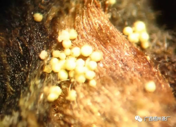 “金花”是在獨特的環(huán)境下,生長出來的一種益生菌類,又名“冠突散囊菌”。肉眼看上去,呈金黃色小顆粒狀。金花茂盛的六堡茶,催化多酚類化合物氧化,使茶葉苦澀味減少,茶葉品質(zhì)更醇甜,有著濃郁的菌花香,口感更順滑…